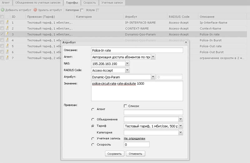 - завести необходимые тарифы в биллинге с привязкой к радиус агенту.
