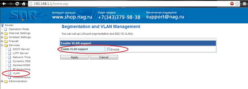 Настройка VLAN на маршрутизаторах SNR-CPE-W4N