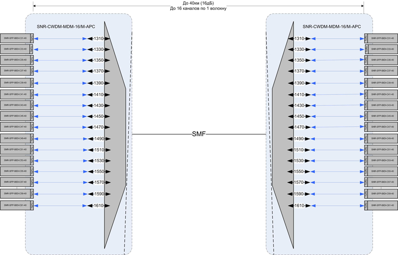 Основное отличие таких оптических модулей от классических CWDM SFP заключается в том, что для приема и передачи используется всего одна несущая длина волны.