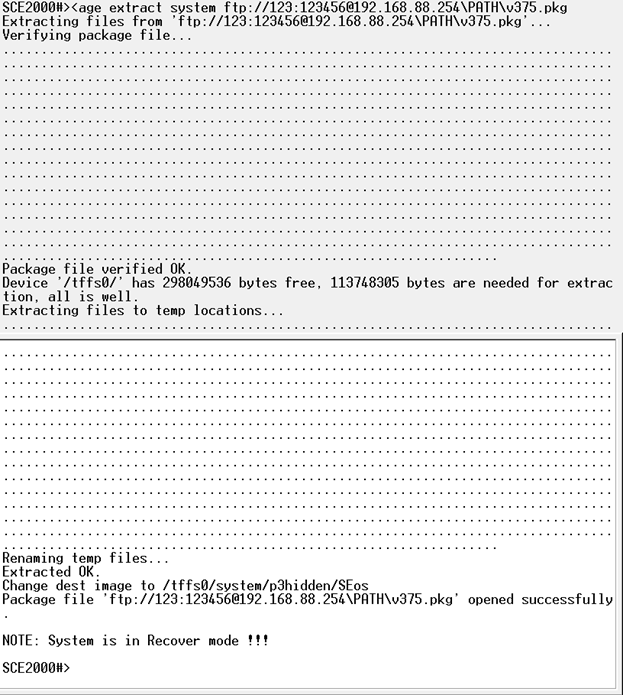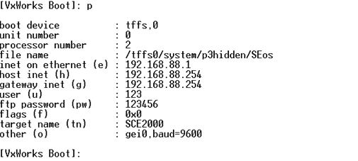 10. Теперь вы можете попасть на SCE при помощи telnet или того же AUX порта и загрузить вашу прошивку используя команду: