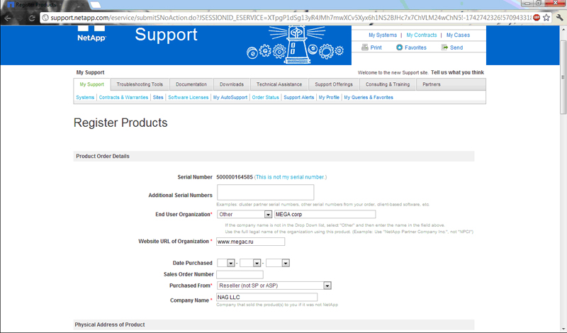 Регистрация СХД для доступа к лицензионным ключам и оказанию сервисного обслуживания