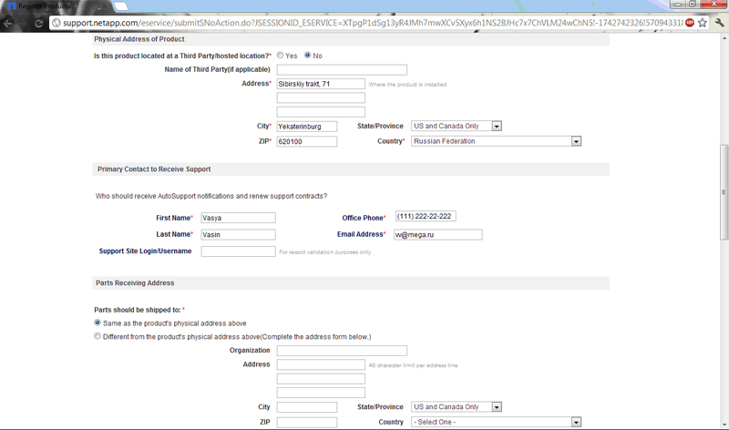 Primary Contact to Receive Support – контакт для технической поддержки