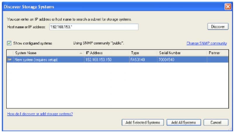 System Manager использует DHCP и Simple Network Management Protocol (SNMP) для обнаружения контроллеров системы хранения. Новые контроллеры будут показаны как New system (requires setup).