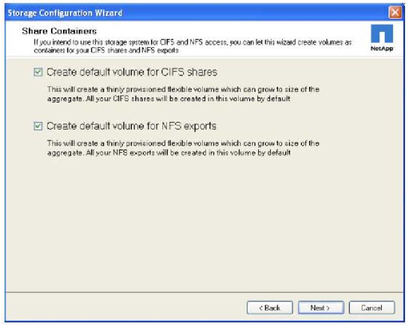 4. Выберите соответствующие чекбоксы для создания сетевой папки CIFS и экспорта NFS, если это требуется вашей конфигурацией. Выберите нужную комбинацию и щелкните Next для продолжения.