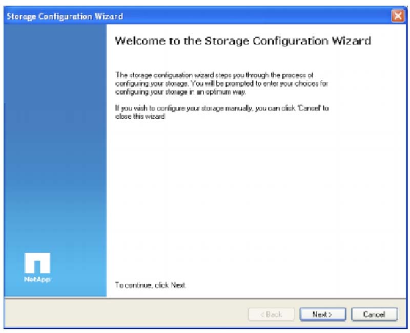 2. Щелкните Next для начальной конфигурации системы хранения.