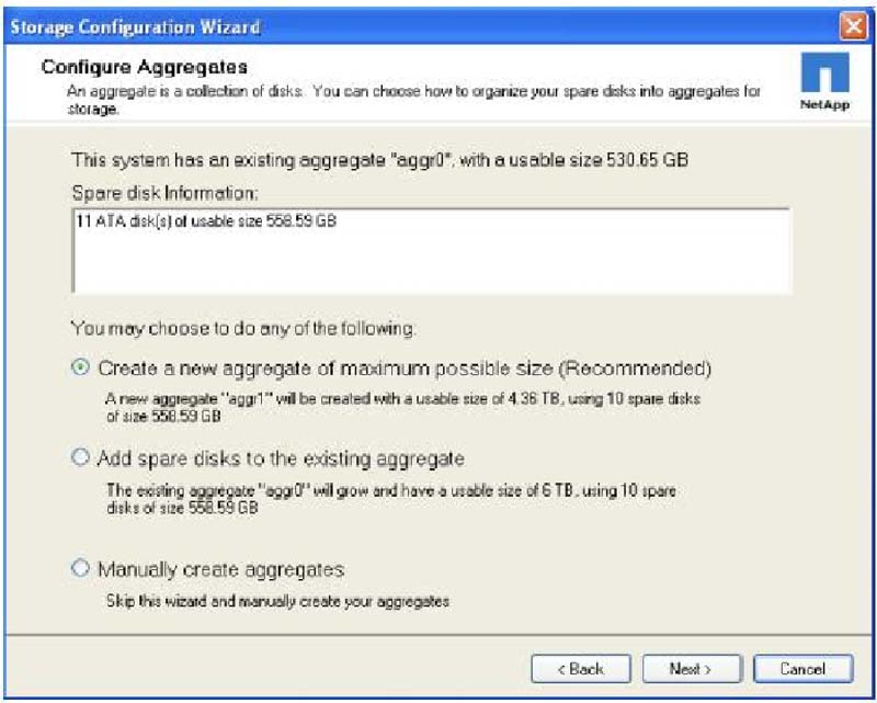 Внимание: Для подробностей о создании и конфигурировании aggregate в ручном режиме, смотрите раздел«Configure an Aggregate» в главе 3.6.1 руководства «Data ONTAP Storage Management Guide», доступного на сайте NetApp Support (ранее NOW™).