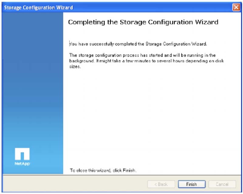 Ваша система хранения сконфигурирована и готова к использованию. Теперь вы можете выполнить детальную настройку хранилища (добавить диски, создать aggregates, тома, qtrees, Logical Unit Numbers [LUN]), настроить работу протоколов доступа (CIFS, NFS, iSCSI, FCP, FCoE), и провести детальную конфигурацию системы (настроить сетевые интерфейсы, лицензии, SNMP, пользователей и групп).