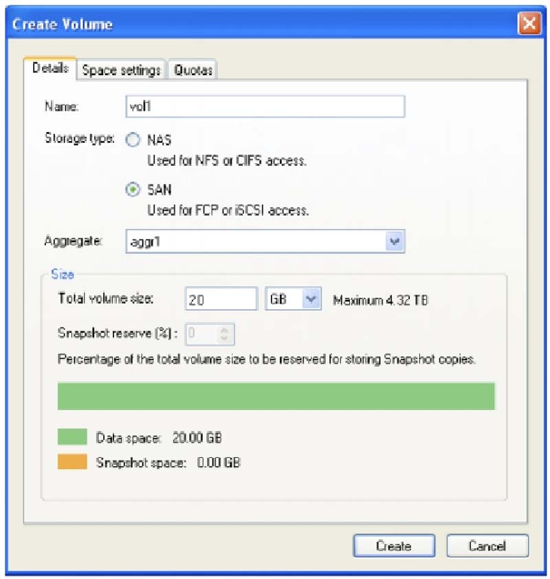 LUN-ы и файловые shares/exports это объекты внутри тома (volume). Создание LUN автоматически создает том со значениями установок по умолчанию, непосредственной частью процесса. Если вы хотите сконфигурировать том с установками, отличными от установок по умолчанию, вы должны создать том самостоятельно и отдельно. Вы также можете создать хранилище с доступом по протоколу NFS, оптимизированное для VMware.