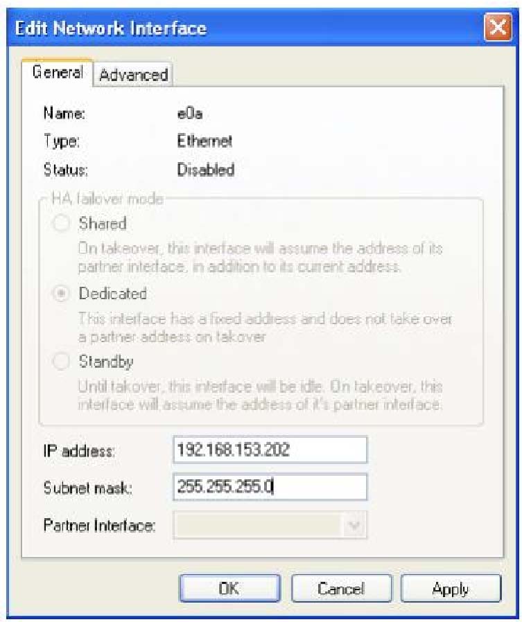 3. В окне Edit Network Interface щелкните закладку General и сконфигурируйте IP адрес и подсеть. Щелкните OK.
