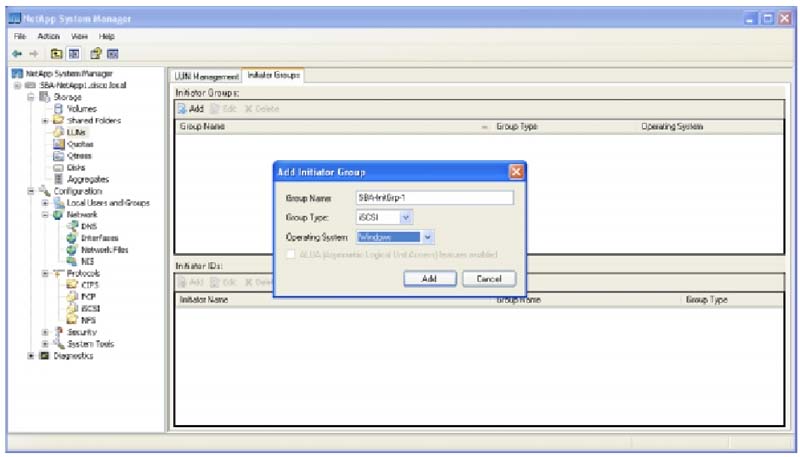 4. Щелкните кнопку Add в окне Add Initiator Group для создания группы.