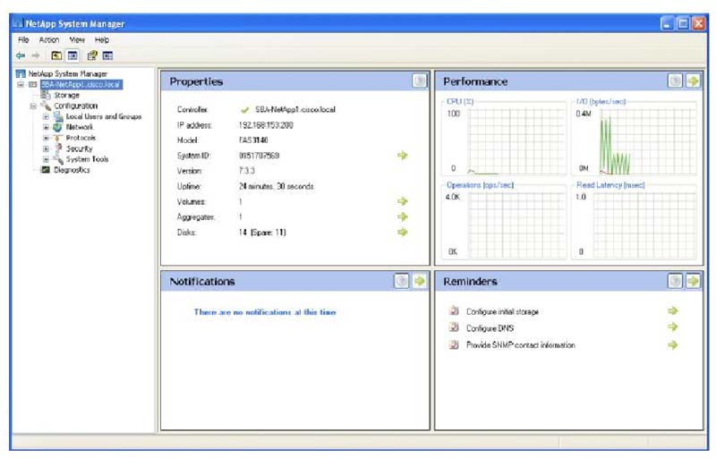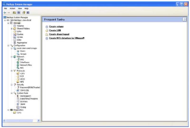 NetApp System Manager - это мощный и богатый возможностями, но простой в использовании инструмент администрирования системы хранения, используемый для базовой настройки и управления системами хранения NetApp. System Manager хорошо подходит для начальной установки и конфигурирования. Для большой системы, включающей в себя много систем хранения, NetApp предлагает также целое семейство средств администрирования.