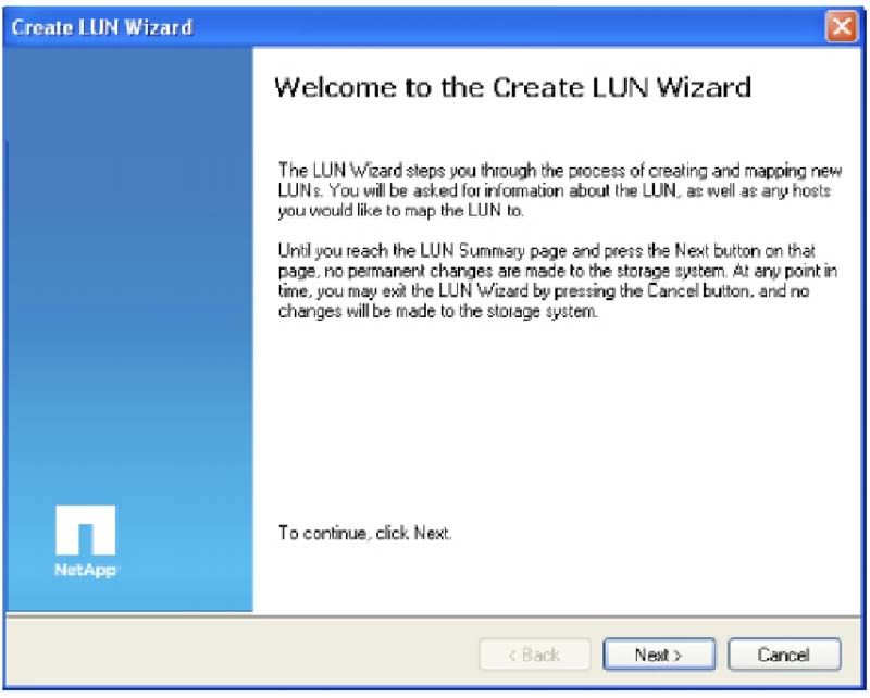 2. Нажмите Next для начала операции создания LUN.