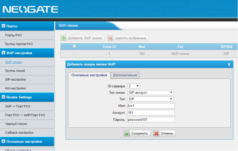 Нажатием на кнопку "VoIP-линию", перейдите вменю создания VoIP-линии