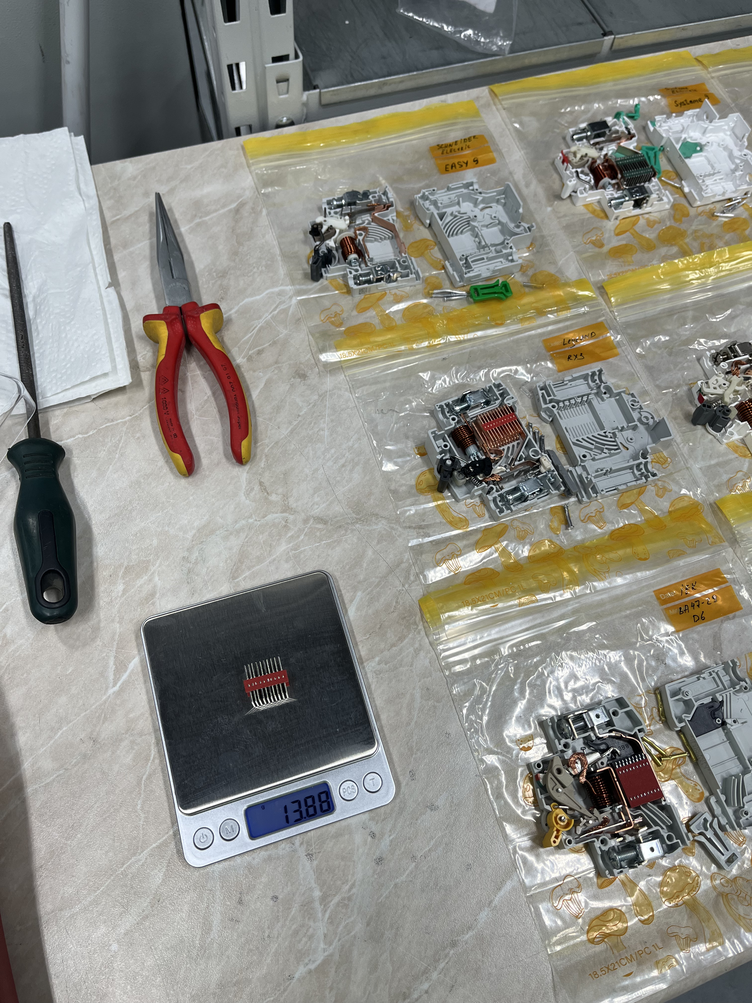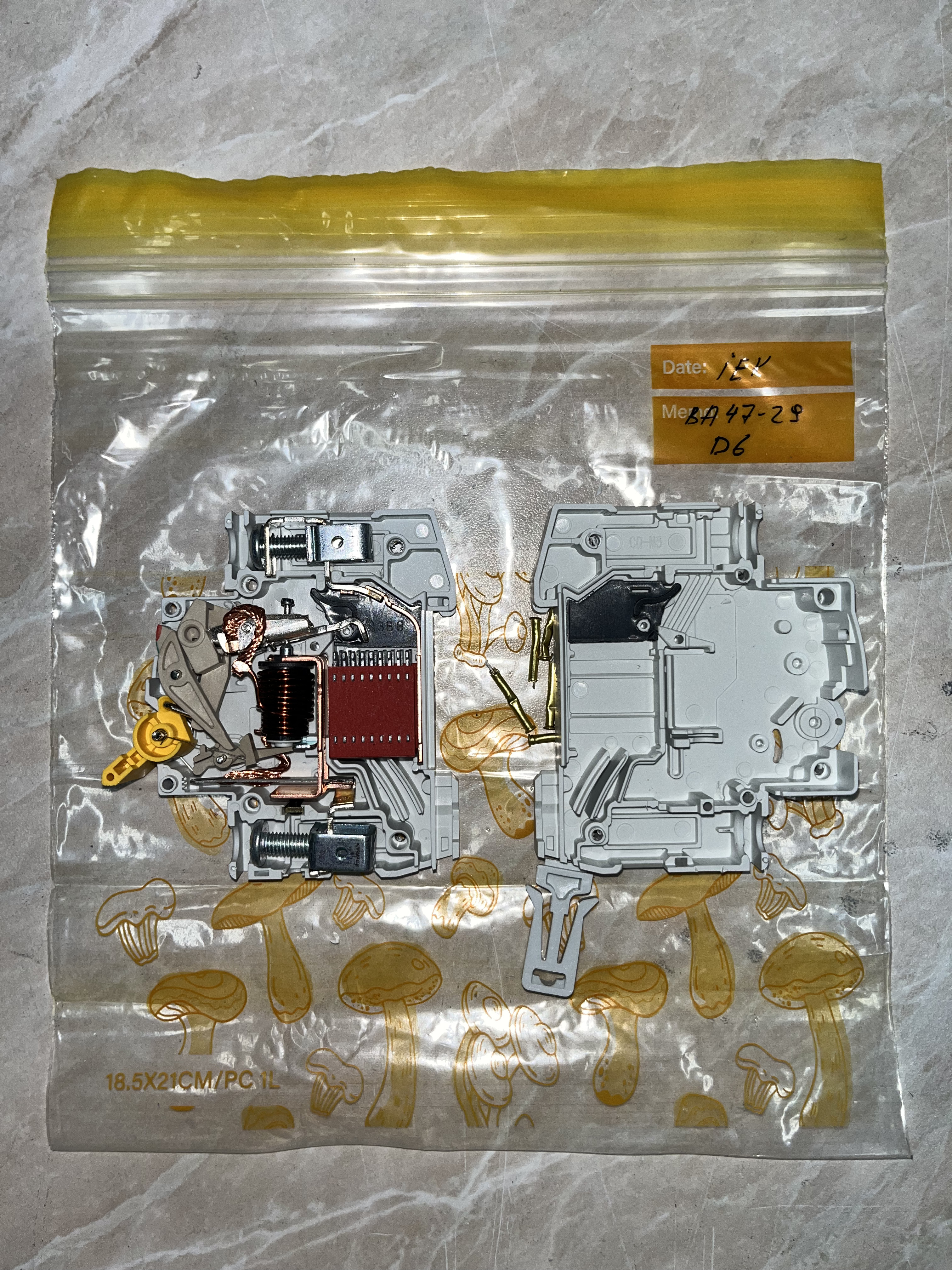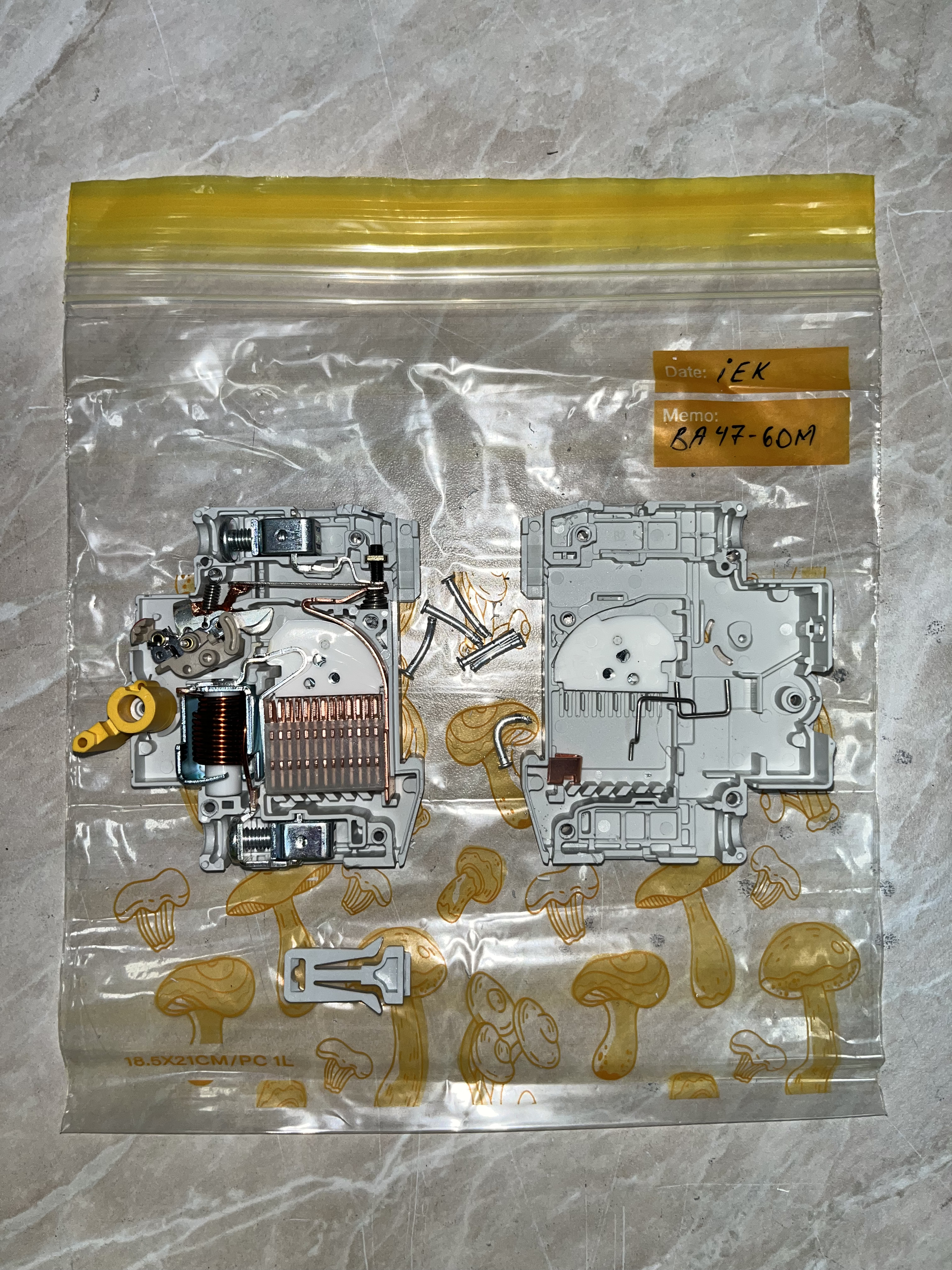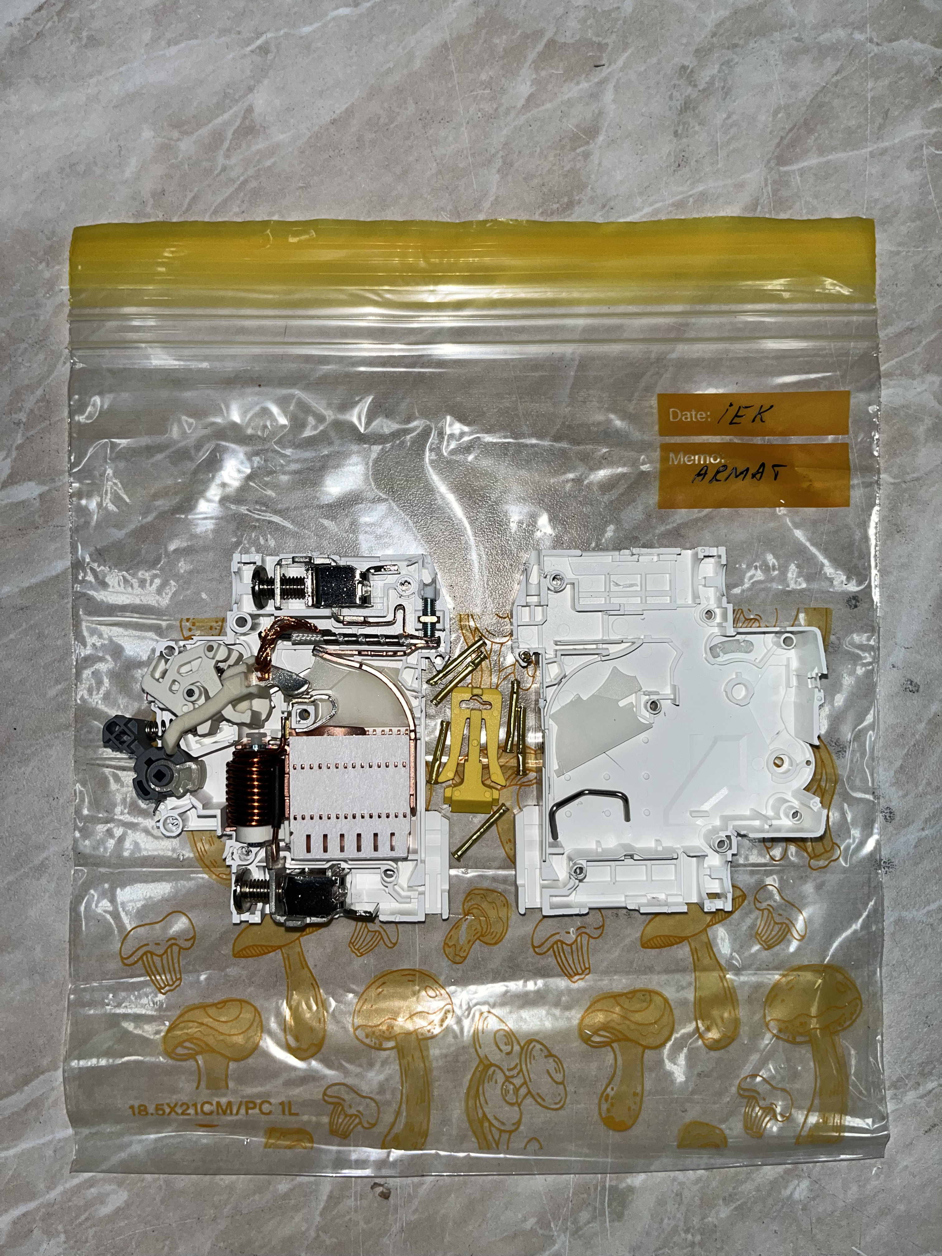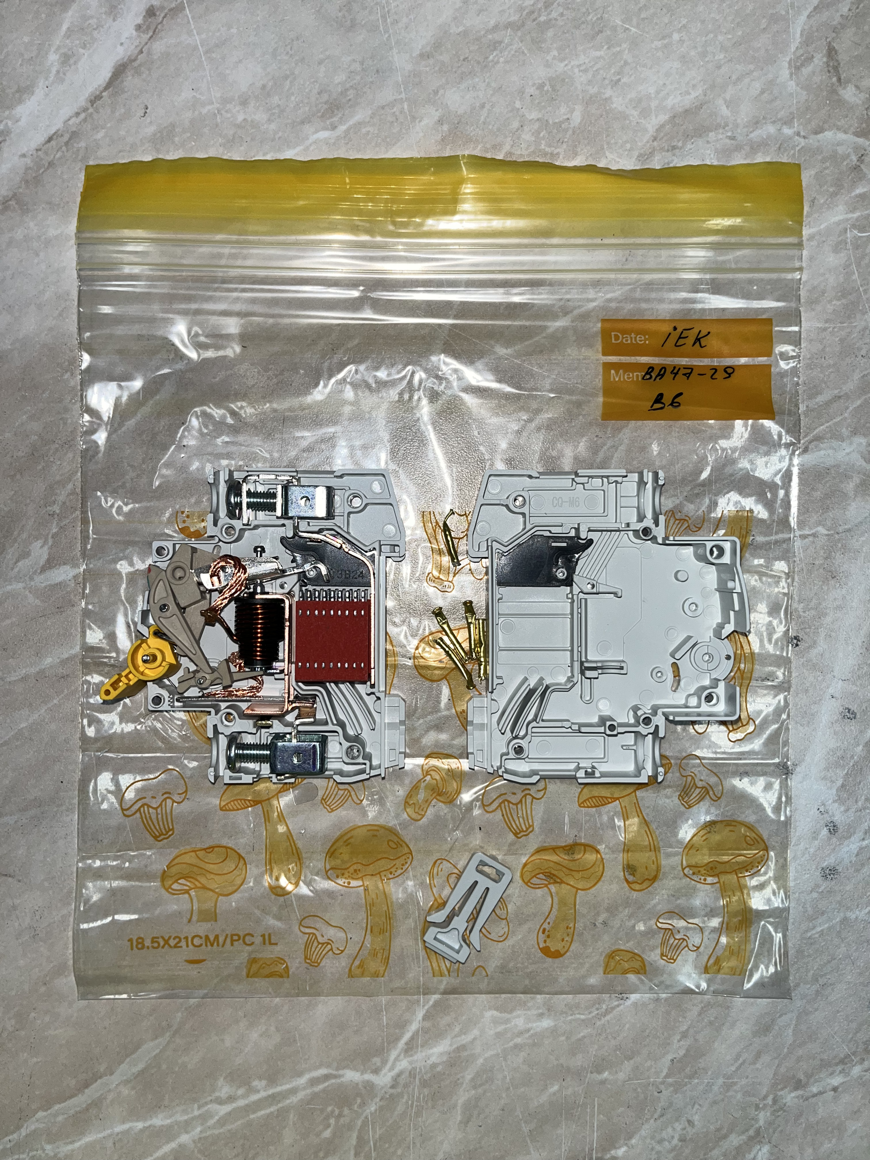 Цель второй части работы: провести сравнительный анализ внутренней конструкции и материалов ключевых компонентов АВ, чтобы установить прямую связь между их устройством и измеренными ранее эксплуатационными характеристиками. Мы разобрали 16 моделей, включая, помимо основной массы устройств с характеристикой «C», образцы ВА47-29 B6 и ВА47-29 D6. Это позволило в рамках одного производителя (IEK) и одной модельной линейки (ВА47-29) сравнить, как меняются конструктивные параметры при смене электромагнитной характеристики с «B» на «C» и «D».