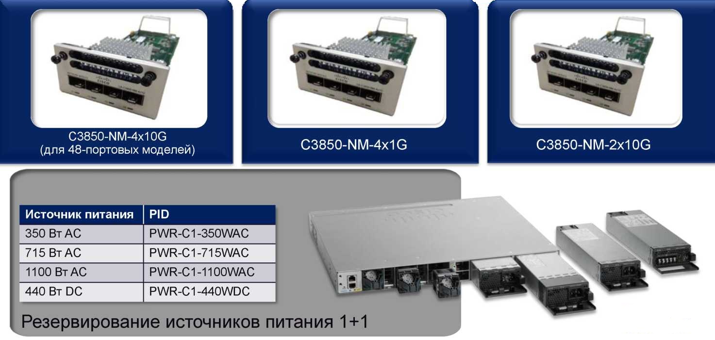 - Cisco StackPower технология обеспечивает резервирование и наращивание бюджета электропитания в коммутируемом стеке