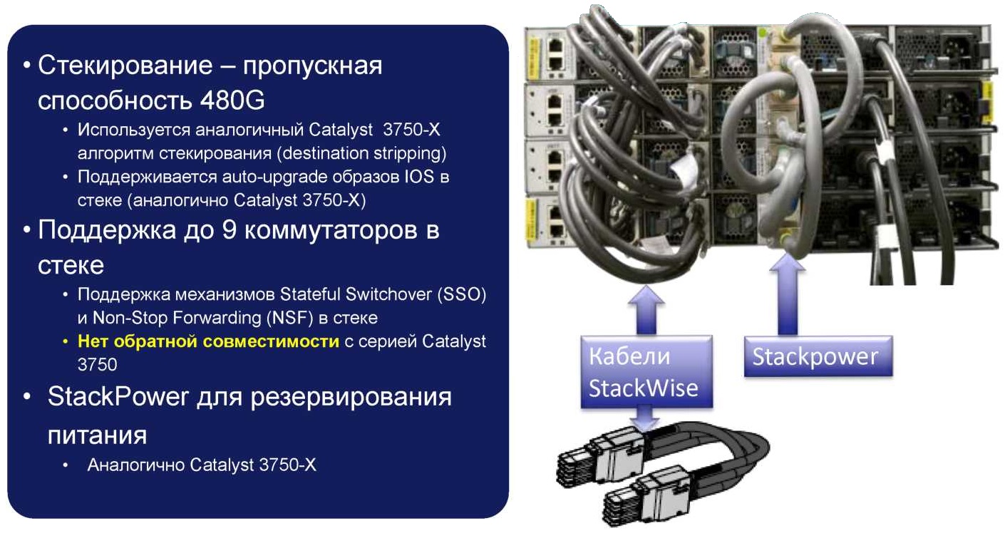 - Cisco StackWise-480 технология обеспечивает масштабируемость и отказоустойчивость с пропускной способностью стека в 480 Гбит/с