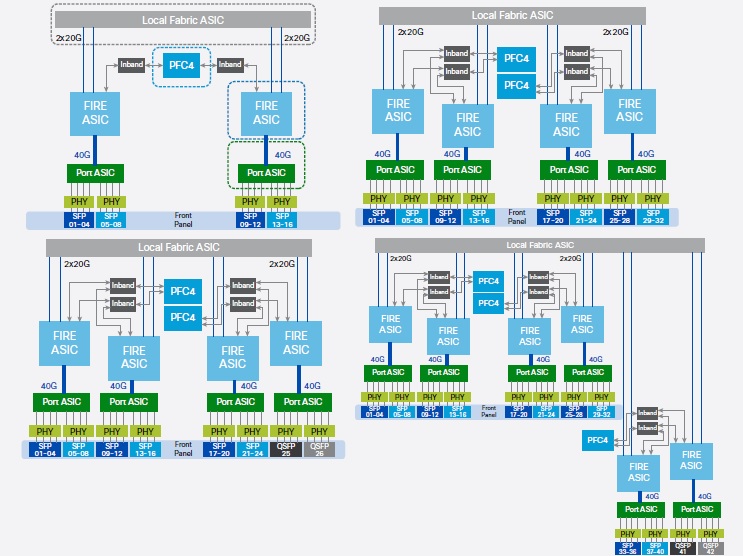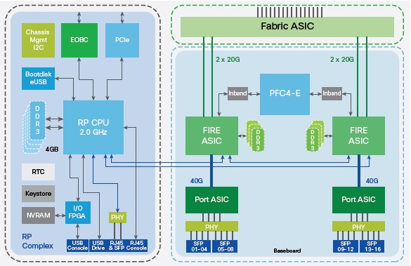 Fabric complex основан на хорошо известном ASIC для SUP 2Т. Локальный ASIC коммутатора обеспечивает по два канала