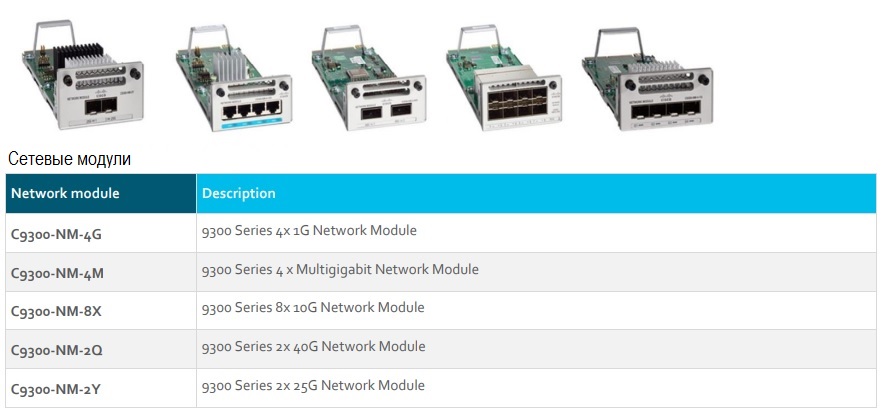 Примечание: Сетевые модули для серии 3850 также совместимы с серией коммутаторов 9300