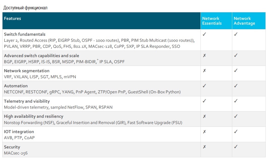 Основные особенности Cisco Catalyst серии 9300: