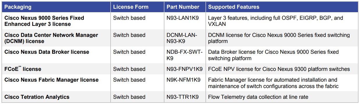 Платформа 9300-EX - это следующее поколение фиксированных коммутаторов Cisco Nexus серии 9000. Платформа построена на современной системной архитектуре, предназначенная для обеспечения высокой производительности в соответствии с растущими потребностями масштабируемости центров обработки данных и предприятий. Коммутаторы на платформе Cisco Nexus 9300-EX предлагают различные варианты интерфейсов для прозрачной миграции существующих ЦОД со скоростей 100 Мбит/с, 1 Гбит/с и 10 Гбит/с до 25 Гбит/с на сервере, и от скоростей 10 и 40 Гбит/с до 50 и 100 Гбит/с на уровне агрегации.