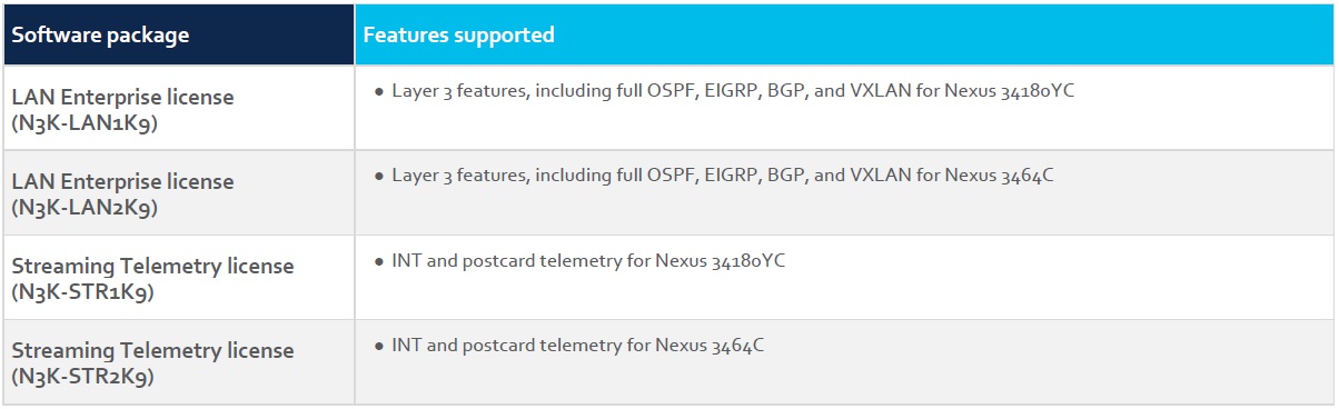 На платформах Cisco Nexus 34180YC и 3464C используется ведущая в отрасли операционная система сетевого программного обеспечения Cisco® NX-OS, которая помогает обеспечить постоянную доступность и устанавливает стандарт для критически важных сред центров обработки данных.
