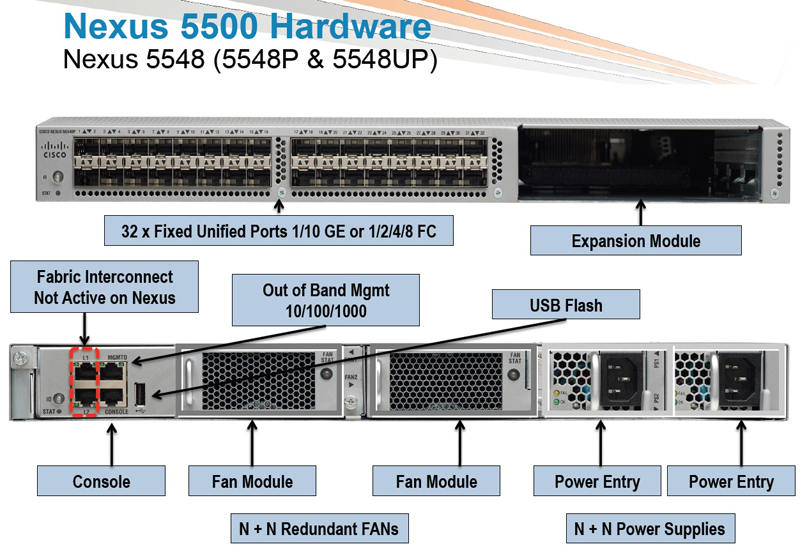 Nexus 5500 семейство коммутаторов Cisco с портами 10Гбит/с Ethernet, Cisco Data Center Ethernet (DCE) и Fibre Channel over Ethernet (FCoE), работающих на полной линейной скорости, со сверхнизкой задержкой коммутации в 2 микросекунды для приложений центров обработки данных.