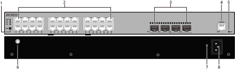 | 3. 4 порта GE SFP | 4. Консольный порт |