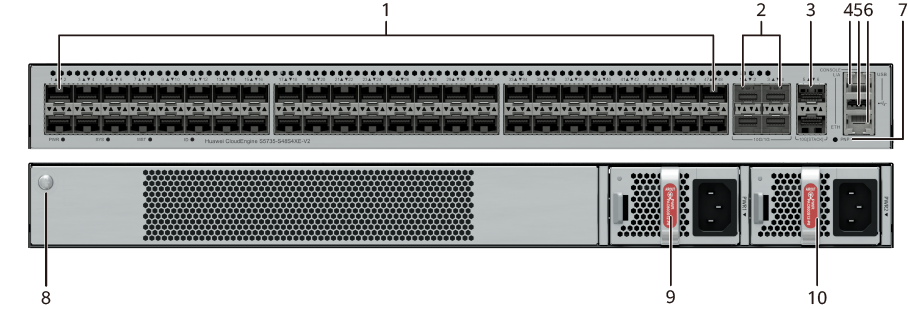 | 9. Слот модуля питания 1 | 10. Слот модуля питания 2 |
