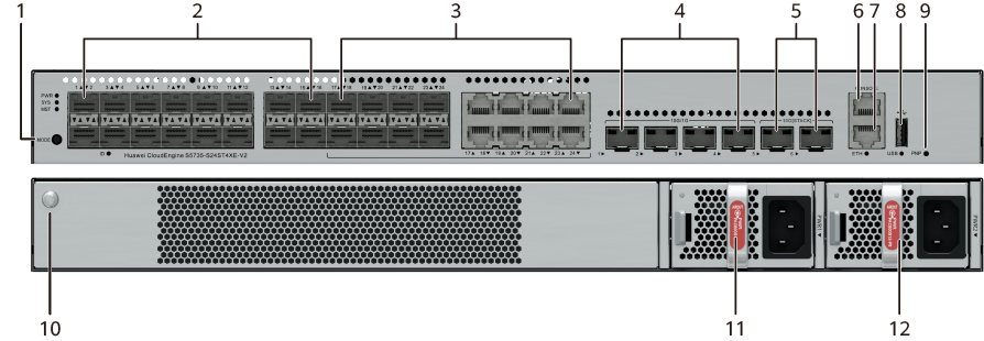 | 3. 8 Комбо портов 100/1000BASE-X или 10/100/1000BASE-T | 4. 4 порта 10GE SFP+ |