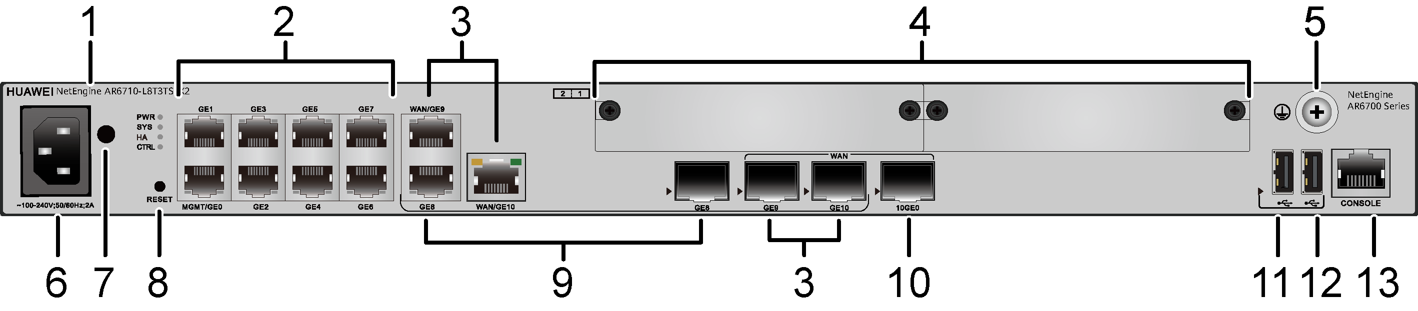 | 9. Интерфейсы LAN: комбо-интерфейс GE | 10. Интерфейс WAN: один оптический интерфейс 10GE |