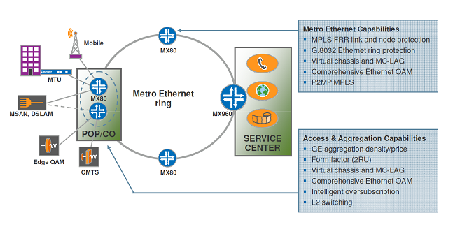 MX80 для построения колец доступа и агрегации.