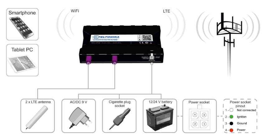 RUT850 можно использовать в легковых автомобилях, автобусах, грузовиках и тяжёлом транспорте с питанием 24 В. Это возможно благодаря широкому диапазону входного напряжения и защите от скачков напряжения - нет необходимости в организации дополнительной защиты от перенапряжения.