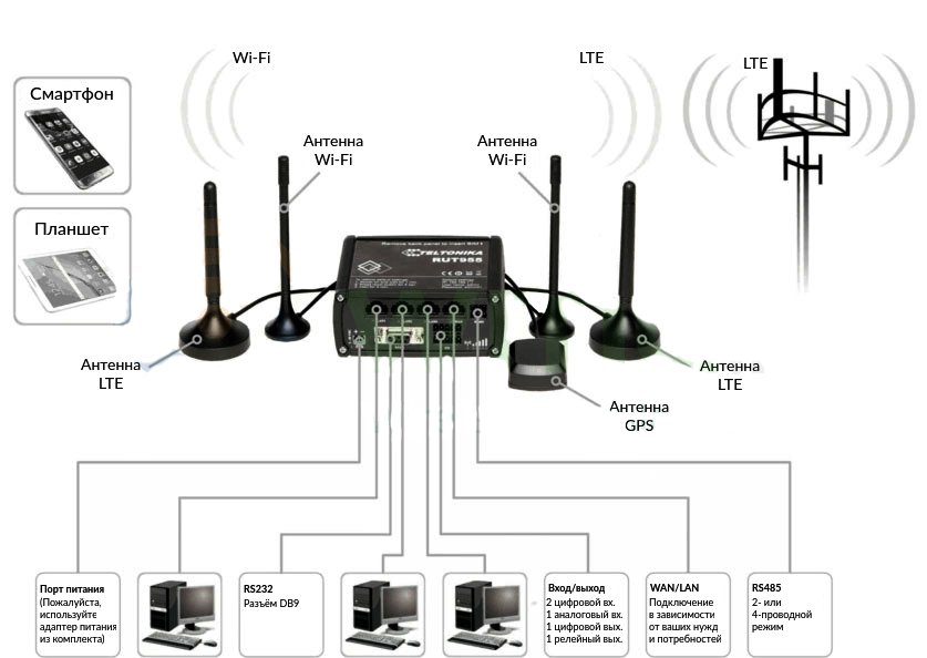 Промышленный Wi-Fi/4G маршрутизатор Teltonika RUT955 (в комплекте GNSS-антенна)