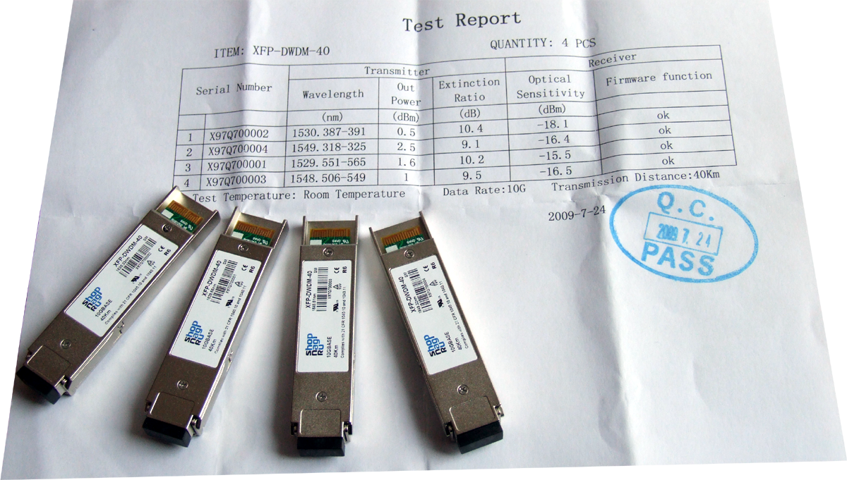 Модуль XFP DWDM оптический, дальность до 40км (15dB), 1549.32нм