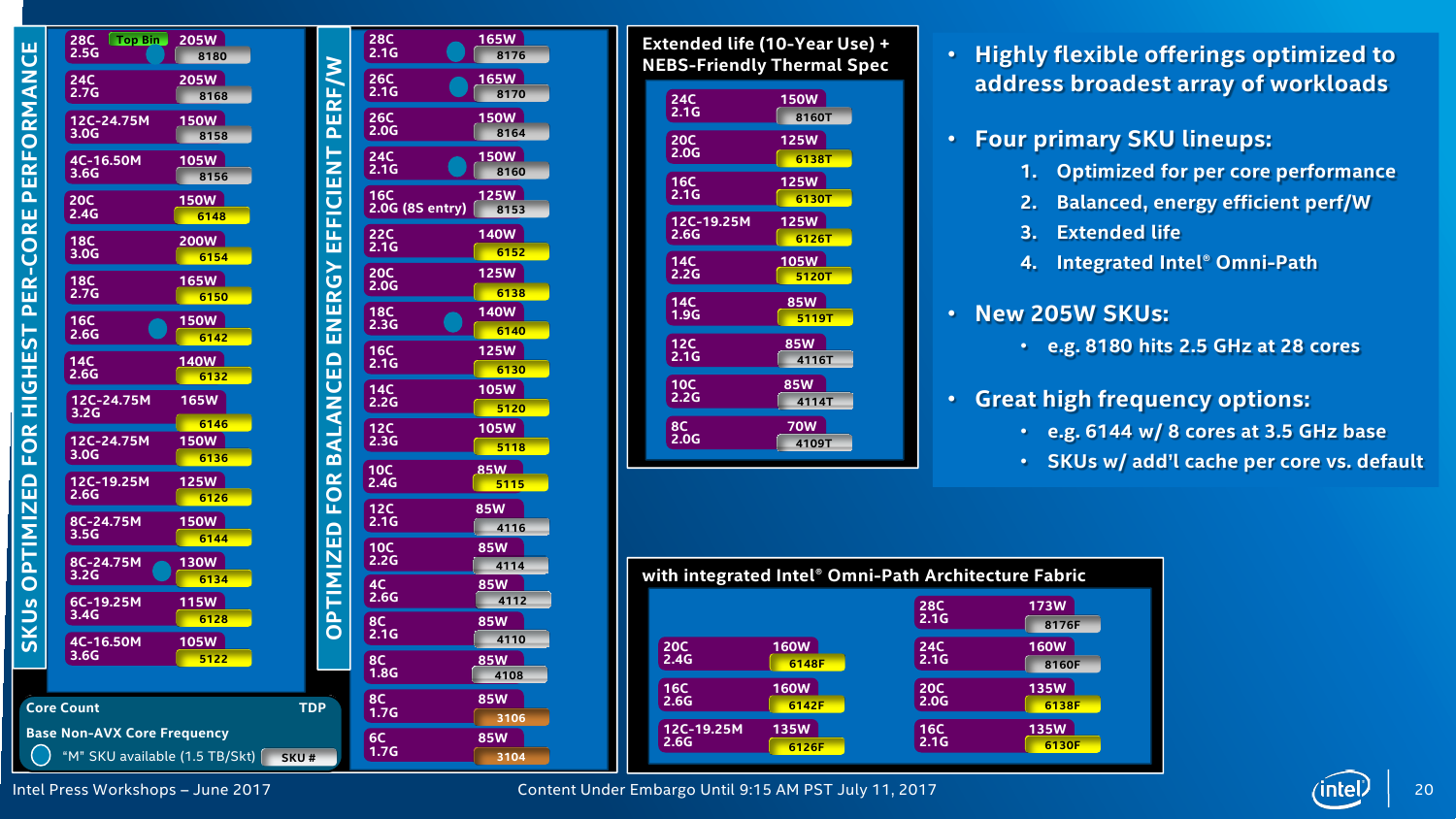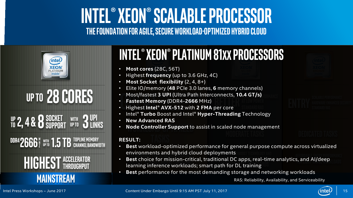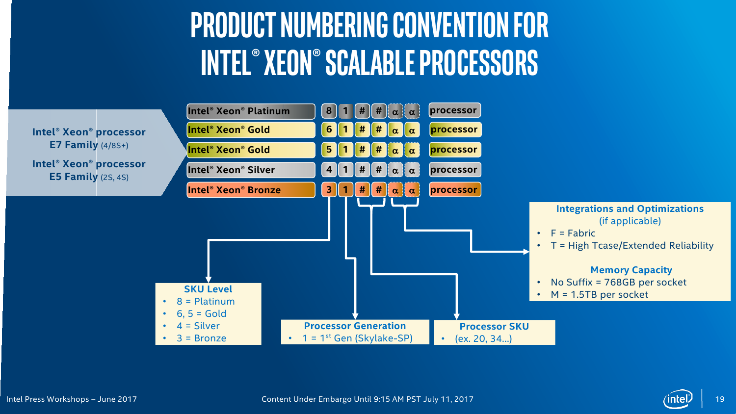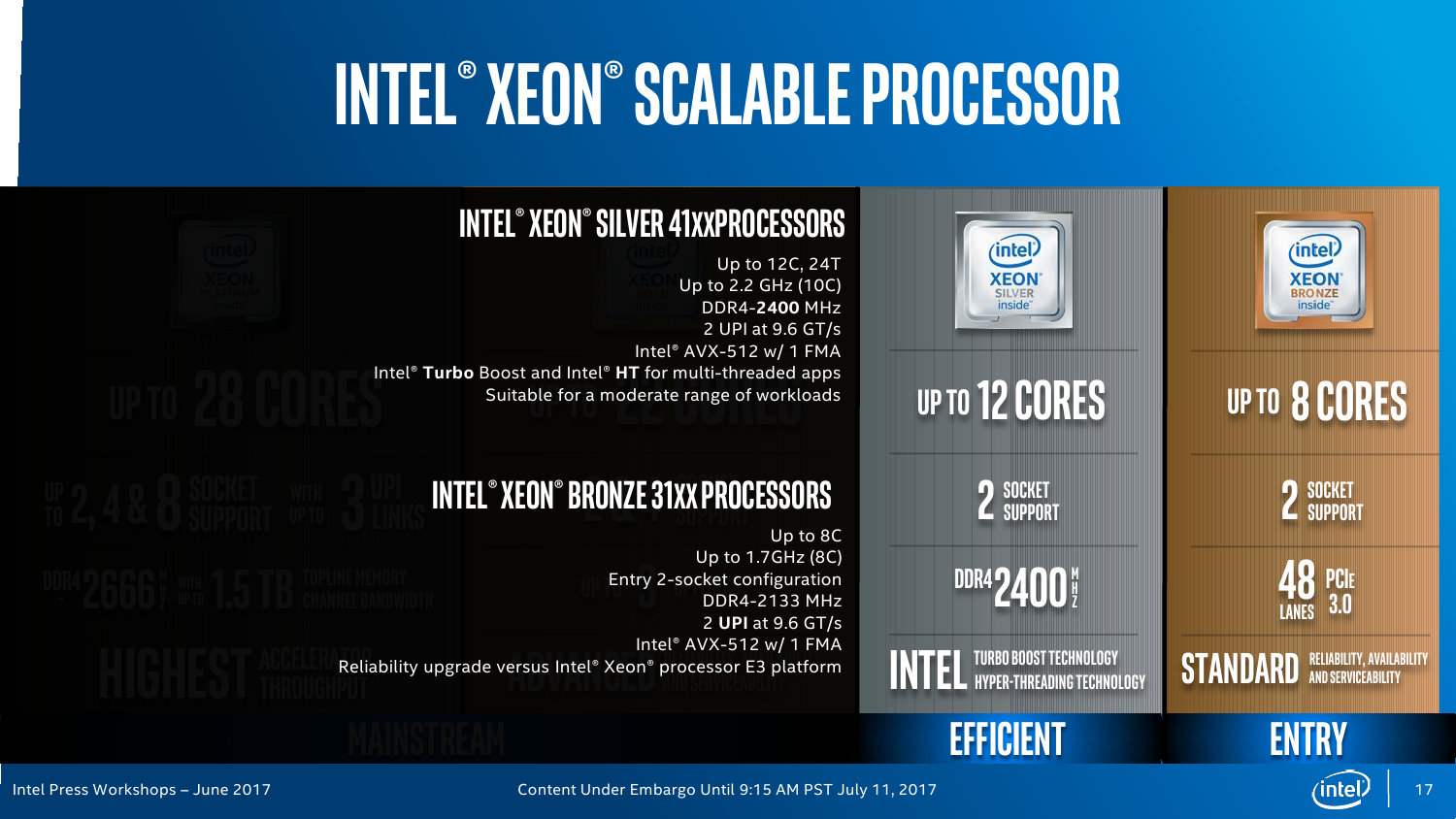 Новые процессоры Intel Xeon семейства Skylake-SP имеют кодовые имена : Platinum, Gold, Silver и Bronze.