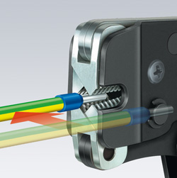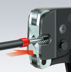 Инструмент Knipex KN-975308 предназначен для опрессовки контактных гильз, которые устанавливаются фронтально. При работе инструмент автоматически настраивается под необходимый размер контактных гильз.