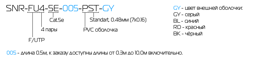 | SNR-FU4-5E-005-LST-BL | F/UTP | 4 | 5e | 50см | LSZH | 0.48 (7х0.16) | синий |
