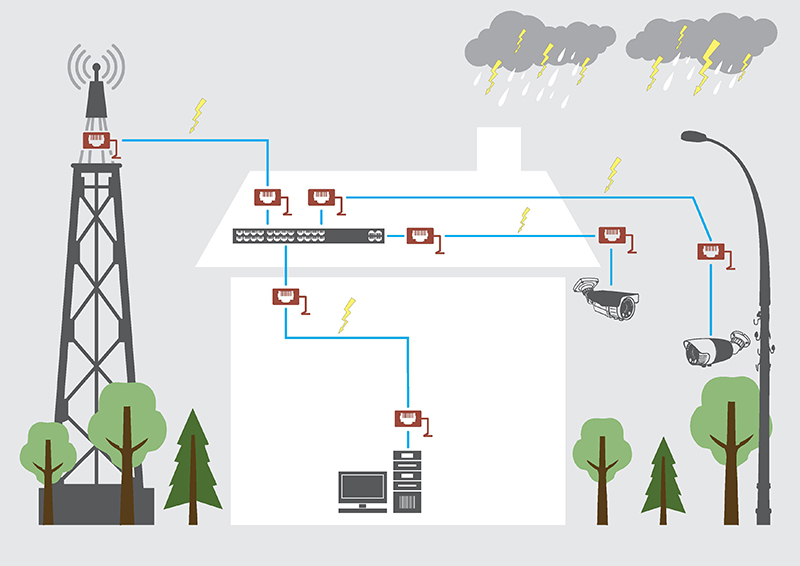 Грозозащита, эффективна при установке на медные порты оборудования при длине кабеля более 10 метров.