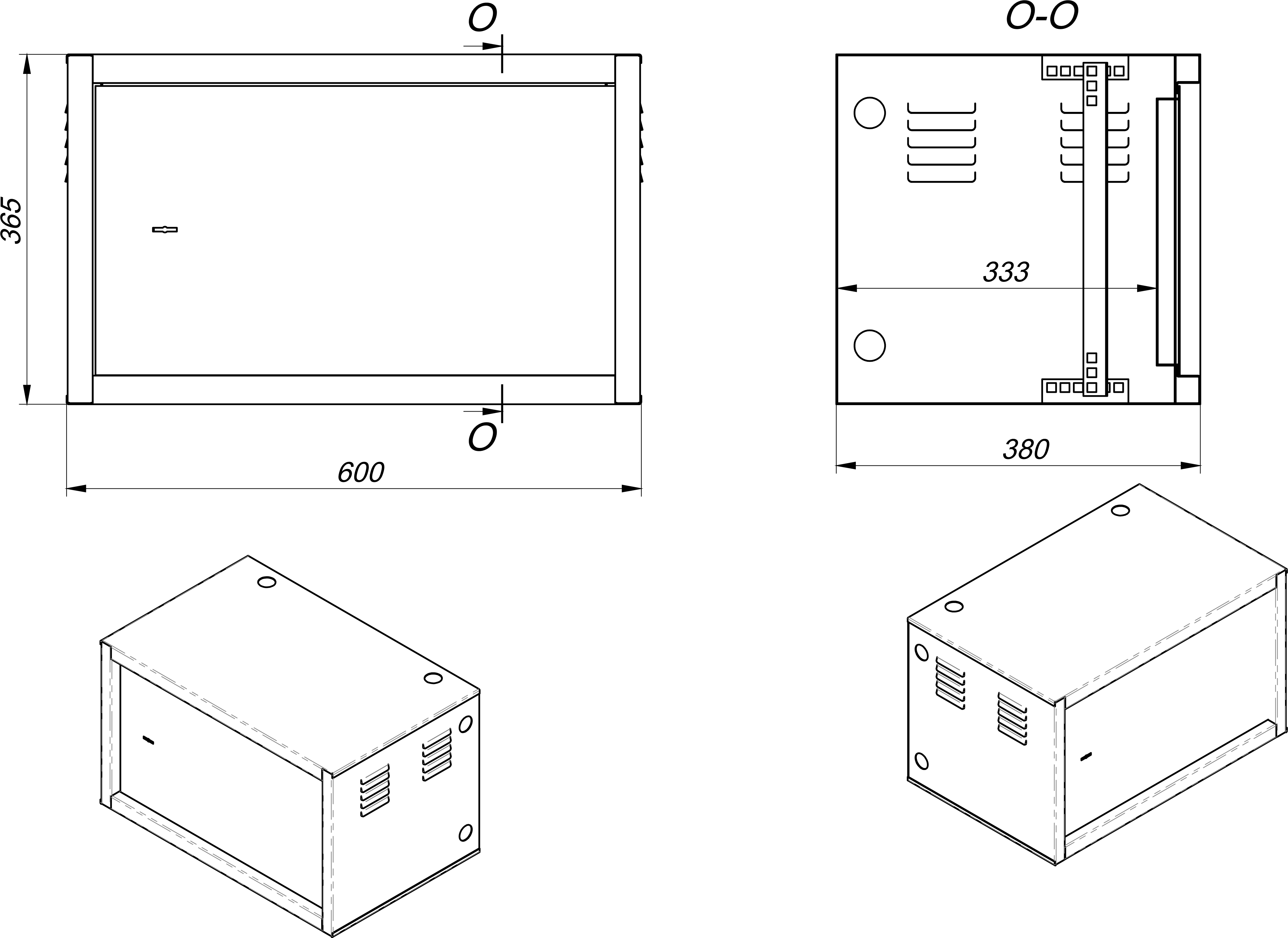 Крепление к стене анкерными болтами через сквозные отверстия в задней стенке шкафа. Дверь шкафа имеет рамную конструкцию и утоплена на 10мм, фиксируется замком, стойким к подбору ключей и механическим повреждениям. Специально разработанные внутренние шарниры препятствуют вскрытию шкафа путем срезания петель. Внутри установлен болт заземления.