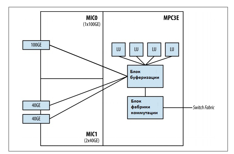 Линейные карты (Modular Port Concentrators - MPCs) на базе чипсета Trio представляют собой совокупность линейных модулей нового поколения для маршрутизаторов Juniper MX серии, обеспечивающих высокую производительность и широкий спектр услуг, необходимых для продвинутых Ethernet сервисов, в мультисервисных сетях. Линейная карта MPC3E сожержит модифицированный чипсет Trio.