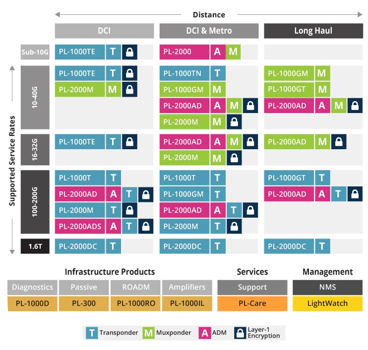 - PL-1000/PL-2000 - транспондеры/макспондеры