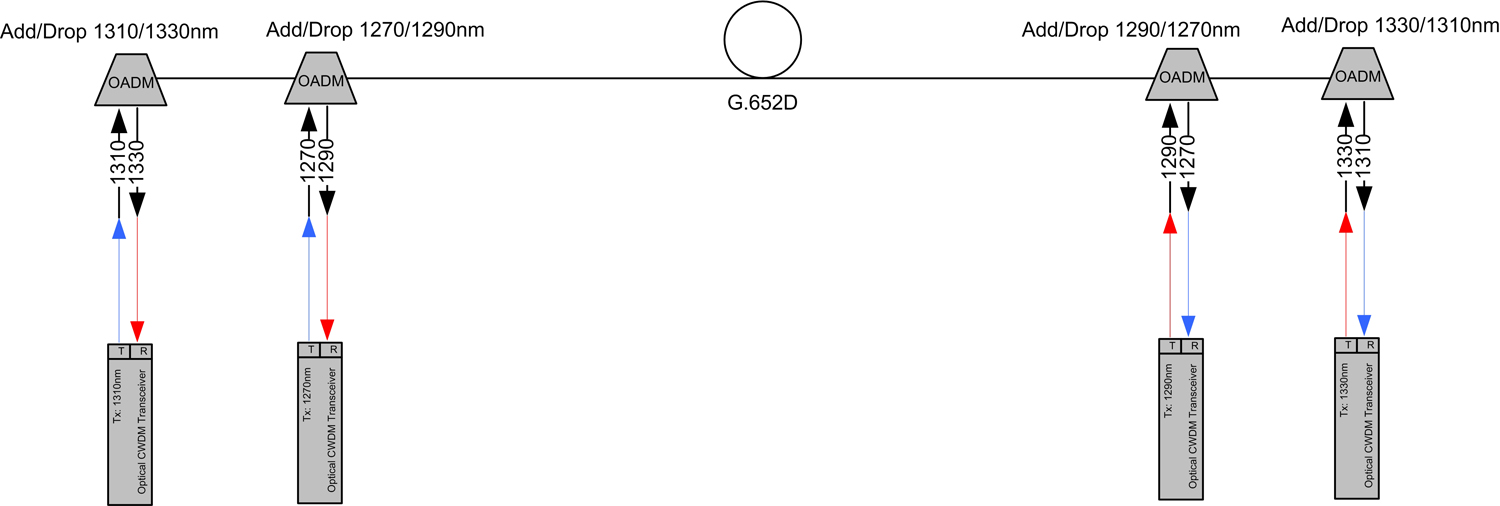 Каналы 1310/1330нм зачастую применяют из-за экономии средств при организации 10G линков, т.к. в диапазоне 1270-1330нм цена таких вставок существенно ниже. Объясняется это просто, в стандарте волокна G.652 наименьшее значение хроматической дисперсии находится как раз в этом диапазоне, поэтому в этой области длин волн возможно изготовление 10G-модулей на основе DFB-лазера, который существенно дешевле EML.