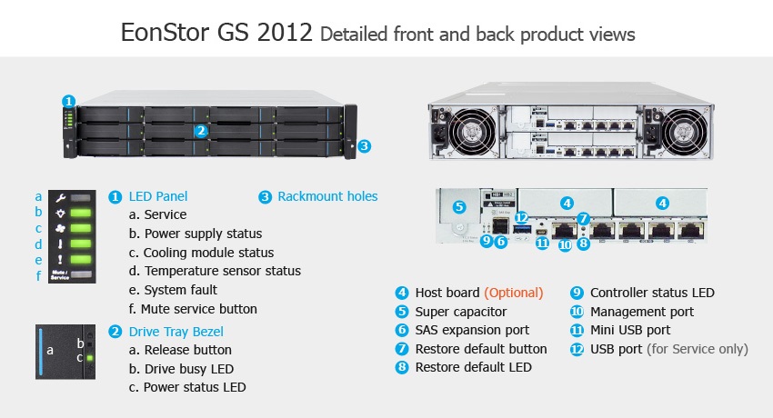 Серии EonStor GS 3000/2000 представляют собой комплексные корпоративные решения с исключительной производительностью передачи данных SAN и NAS для удовлетворения потребностей от СМП до крупных предприятий. Помимо разнообразных форм-факторов, эта серия также предлагает до 4-х наборов модульных хост плат для удовлетворения требований различных приложений и для преобразования общей архитектуры, что обеспечивет большую гибкость развертывания. Кроме того, система обладает высокой расширяемостью емкости хранения более 8 ПБ, чтобы легко ответить потребностям будущего роста данных. Таким образом, его выдающаяся производительность, гибкость и высокая расширяемость позволяют использовать критически важные приложения SAN и NAS. GS 3000 идеально подходит для работы высокой производительности, в то время как GS 2000 идеально подходит для более экономного бюджета, при этом удовлетворения всех общих потребностей хранения.