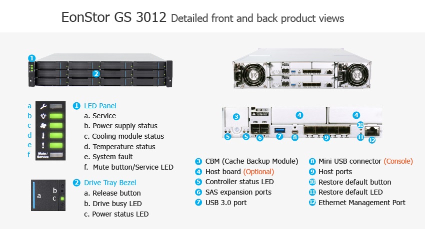 Серии EonStor GS 3000/2000 представляют собой комплексные корпоративные решения с исключительной производительностью передачи данных SAN и NAS для удовлетворения потребностей от СМП до крупных предприятий. Помимо разнообразных форм-факторов, эта серия также предлагает до 4-х наборов модульных хост плат для удовлетворения требований различных приложений и для преобразования общей архитектуры, что обеспечивет большую гибкость развертывания. Кроме того, система обладает высокой расширяемостью емкости хранения более 8 ПБ, чтобы легко ответить потребностям будущего роста данных. Таким образом, его выдающаяся производительность, гибкость и высокая расширяемость позволяют использовать критически важные приложения SAN и NAS. GS 3000 идеально подходит для работы высокой производительности, в то время как GS 2000 идеально подходит для более экономного бюджета, при этом удовлетворения всех общих потребностей хранения.