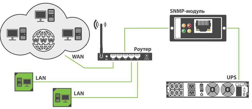Карта SNMP предназначена для удаленного мониторинга и управления ИБП через локальную сеть Ethernet или Интернет. Позволяет в режиме реального времени получать информацию о состоянии электросети и ИБП. Благодаря наличию встроенного http-сервера доступ к карте может осуществляться через любой веб-браузер. В качестве дополнительной опции, карта имеет возможность осуществлять мониторинг температуры, влажности и протечки при подключенном датчике USB Netfeeler (в комплекте отсутствует). С характеристиками можно ознакомится в документации в соотвествущей вкладке "Ссылки и загрузки".