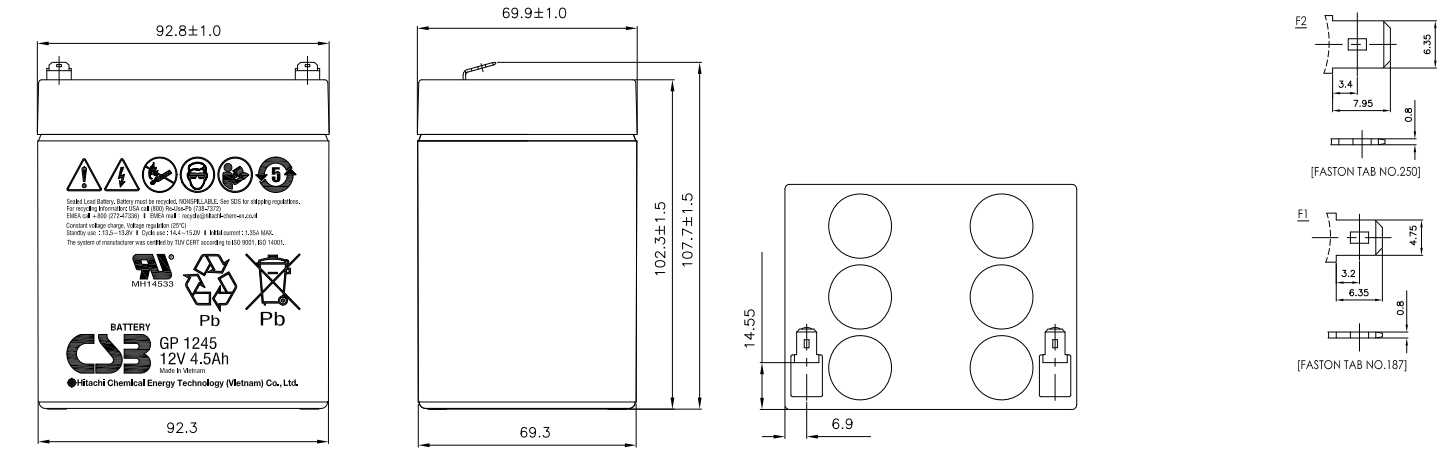 Серия GP (General Purpose) предусматривает в конструкции наличие устойчивого сплава свинца и кальция для электродов. В результате обеспечена повышенная выходная мощность и долговечность. Продукция герметизированна, не нуждается в регулярной доливке воды, может эксплуатироваться в любом положении, монтироваться в корпуса ИБП. F1/F2 клеммы обеспечивают простое подключение и надежный контакт.