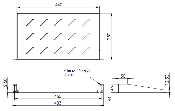 Полка консольная предназначена для установки оборудования весом до 20 кг в напольных телекоммуникационных шкафах и стойках. Выполнена из прочного стального листа и покрыта качественной ударопрочной-порошковой краской серого цвета (RAL 7035). Для облегчения конструкции и обеспечения естественной вентиляции за счёт конвекции, поверхность полки имеет перфорацию. Установка полки осуществляется за счёт её крепления к монтажным профилям шкафа в двух точках. Полка имеет глубину 250 мм и предназначена для шкафов и стоек габаритной глубиной 400 мм. Полка поставляется в индивидуальной картонной упаковке.
