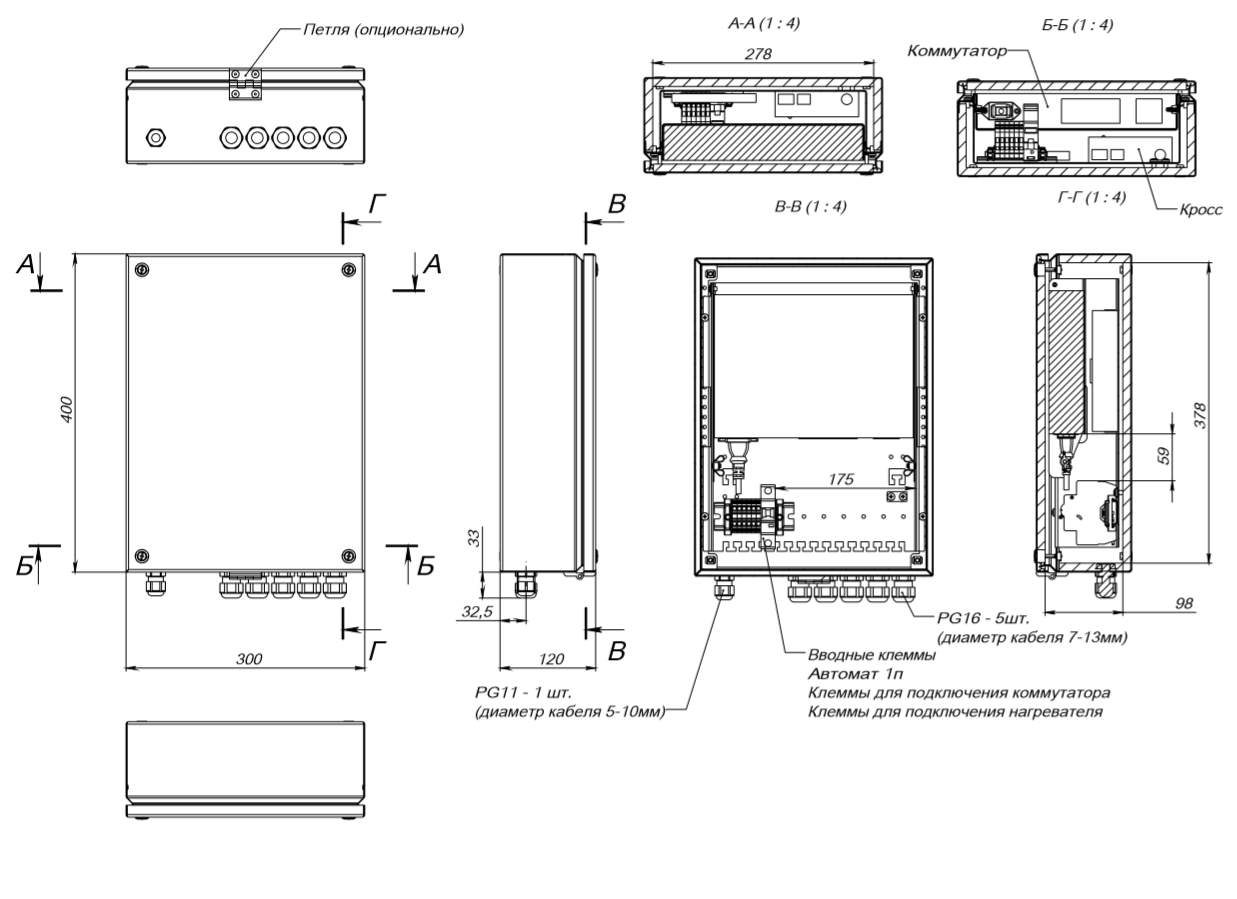 Корпус шкафа имеет сварную металлическую конструкцию. В основании шкафа предусмотрены съемные заглушки для ввода кабеля.