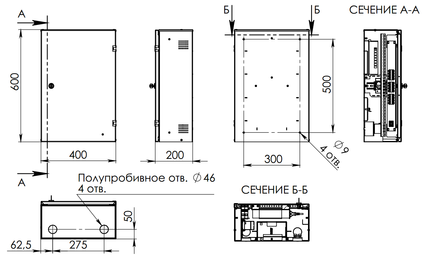 Степень защиты: IP30. Материалы: холоднокатаная сталь ГОСТ 19904-90. Толщина деталей не менее 1,2 мм.