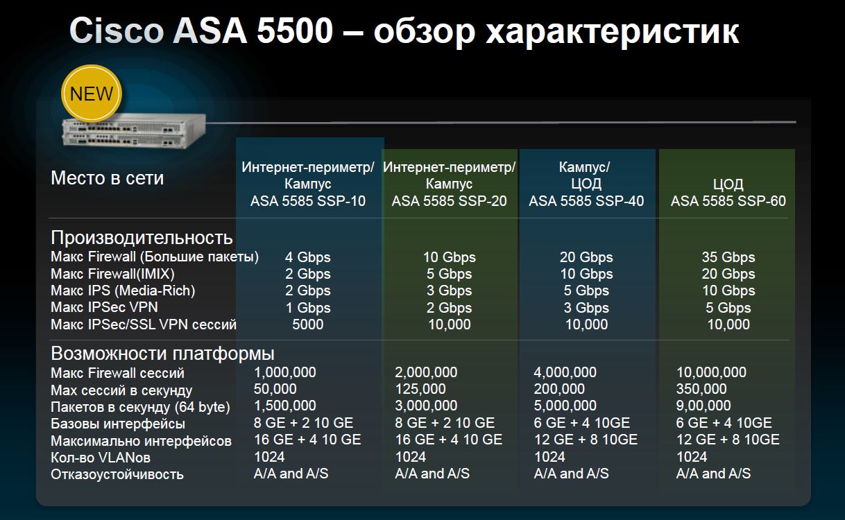 Cisco ASA Software позволяет объединить до 16 Cisco ASA 5585-X в единый клатер с пропускно способностью до 640 Гбит/с, 2 миллиона соединений в секунду и более 100 миллионов одновременных подключений.